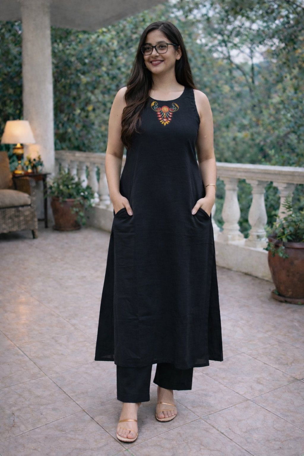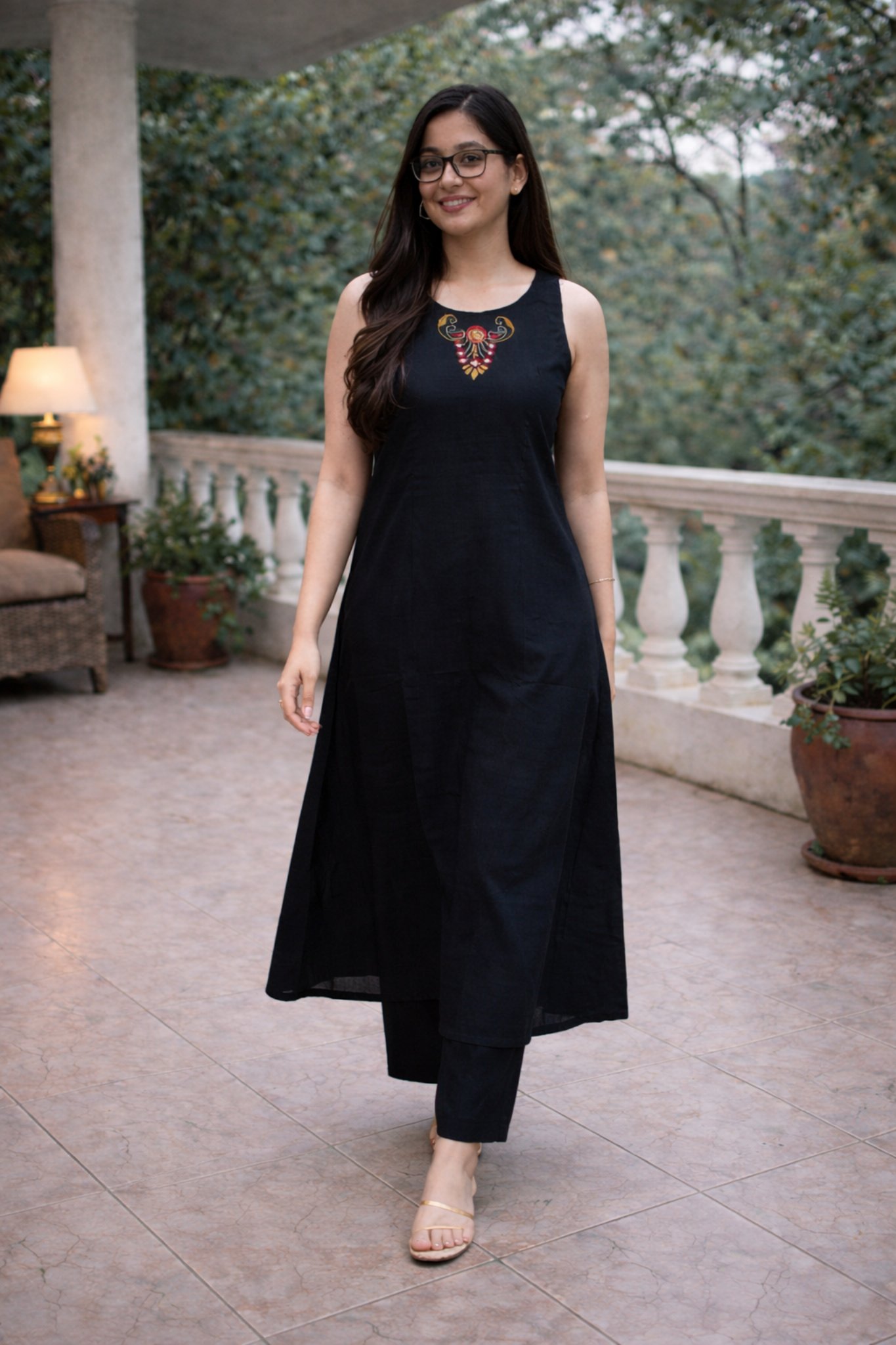 Elevate your everyday style with our elegant Black A-Line Kurti Co-Ord Set, designed for comfort and effortless sophistication. Crafted from premium pure cotton, this sleeveless round neck kurti features exquisite embroidery with original mirror detailing that adds a graceful festive touch.