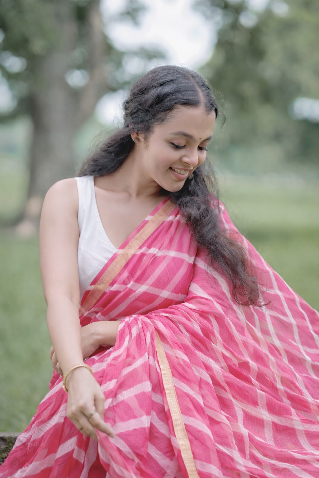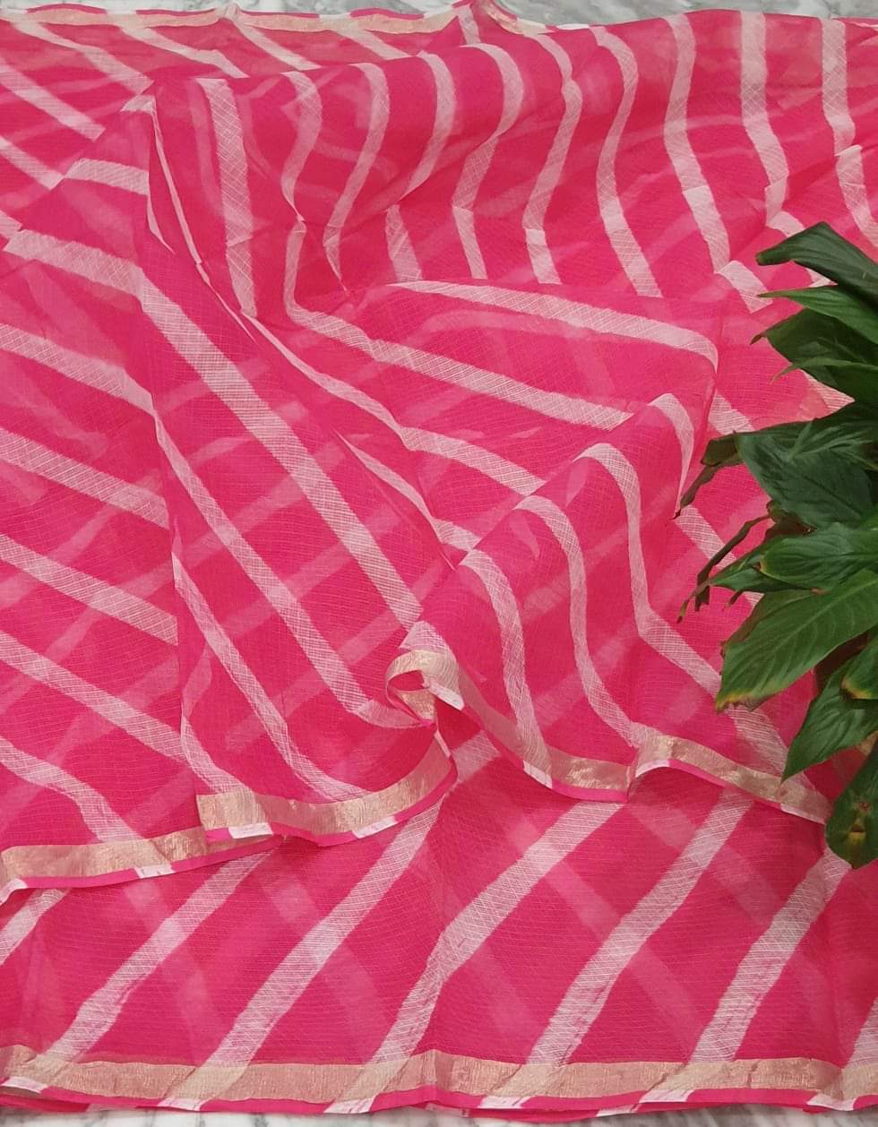 This lightweight and airy weave makes it the perfect companion for hot and humid weather. Whether worn during festive gatherings, formal functions, or casual brunches, this saree offers comfort without compromising on style. The classic laheriya pattern symbolizes flow, freedom, and feminine graceโmaking it a wardrobe essential for lovers of heritage textiles.