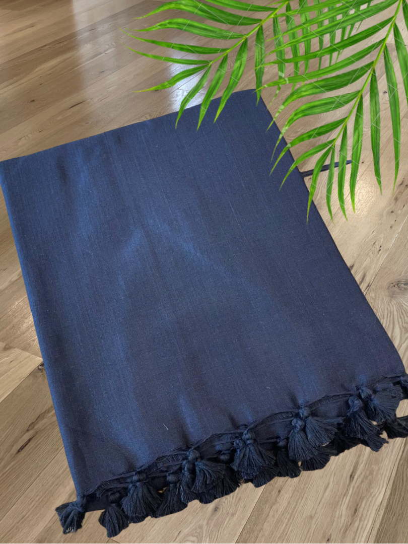 Elevate your style with this elegant soft khadi cotton saree, crafted to offer both comfort and sophistication. The fabric is lightweight and breathable, making it perfect for all-day wear. Designed with a subtle, textured finish and delicate tassels at the pallu, this saree blends traditional charm with a modern, minimalist appeal.